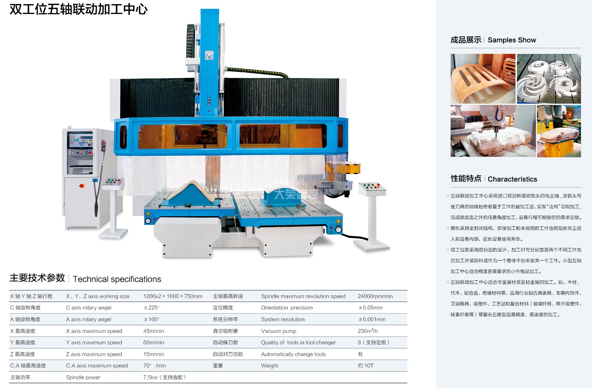 大榮偉業(yè)公司本著"品無止境,誠信為本,追求卓越"的原則,精心投入 CNC 數(shù)控機(jī)械行業(yè),先后研發(fā)出:CNC 五軸聯(lián)動加工中心、數(shù)控板材加工中心、數(shù)控板式家具生產(chǎn)線幾大系列十幾個規(guī)格的產(chǎn)品。被廣泛應(yīng)用于機(jī)械,科研院所,保麗龍加工、車輛內(nèi)飾、厚片吸塑件、鋁板、輕金屬、絕緣材料、各類木板材、木器、木門、模具、化工、廣告、石材加工等不同領(lǐng)域,并遠(yuǎn)銷世界各國。欣大榮公司借鑒國外技術(shù),采用原裝進(jìn)口優(yōu)質(zhì)配件,確保整機(jī)質(zhì)量。企業(yè)已通過 ISO9001質(zhì)量體系認(rèn)證及 CE 認(rèn)證。